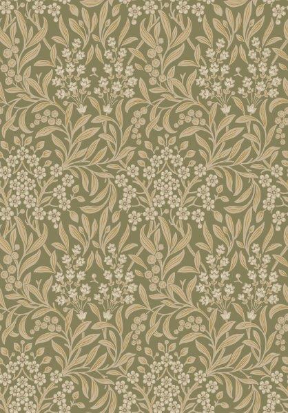 Gekleurd in aardse tinten van groen en licht beige-bruin, is behang Kryddhylla van Borastapeter rustiek maar toch decoratief van stijl. Een meanderend bloemenpatroon neemt de muren over met een kleurenschema geleend van Moeder Natuur. Perfect om een ​​warme, gezellige en rustige ruimte te creëren.