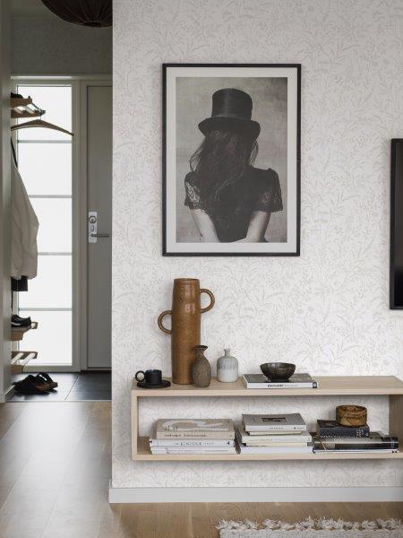 Breng een lichte en natuurlijke sfeer in huis met behang Florian van Boråstapeter. Het subtiele botanische patroon met sierlijke bladeren heeft een verfijnde glinstering, waardoor het licht op een elegante manier wordt gevangen. Dit hoogwaardige vliesbehang is eenvoudig aan te brengen en perfect voor een frisse, tijdloze uitstraling in de woonkamer, slaapkamer of hal. Hier uitgevoerd op een witte achtergrond, maar ook verkrijgbaar in groen, blauw, grijs en beige.