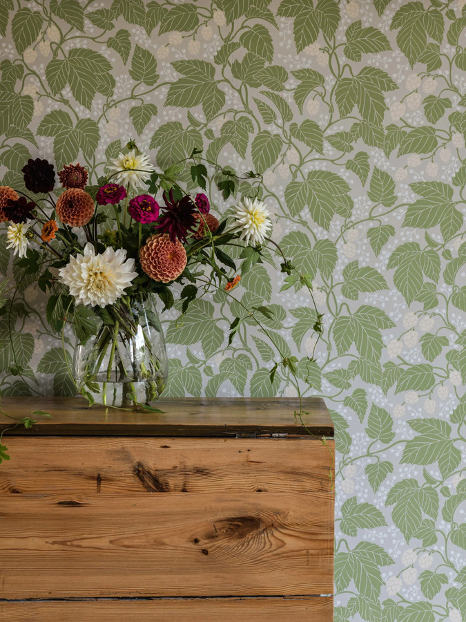 Dit botanische behang is ontworpen door de designers Emma von Brömssen en Daniel Långelid, in samenwerking met de Zweedse behangfabriek ‘Ulricehamns Tapetfabrik’.