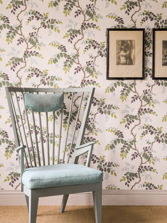 Dit botanische behang is ontworpen door de designers Emma von Brömssen en Daniel Långelid, in samenwerking met de Zweedse behangfabriek ‘Ulricehamns Tapetfabrik’.