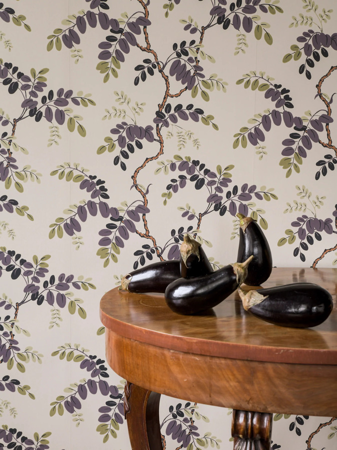 Dit botanische behang is ontworpen door de designers Emma von Brömssen en Daniel Långelid, in samenwerking met de Zweedse behangfabriek ‘Ulricehamns Tapetfabrik’.