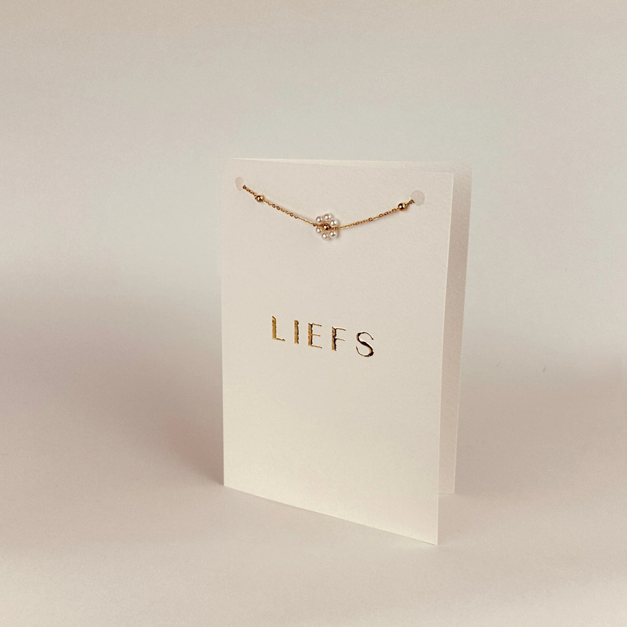 Laat weten dat je aan iemand denkt, met deze luxe Liefs wenskaart. Deze elegante kaart combineert verfijning met een persoonlijk tintje. Een superlief cadeau om iemand te laten weten dat je aan ze denkt, om welke reden dan ook.