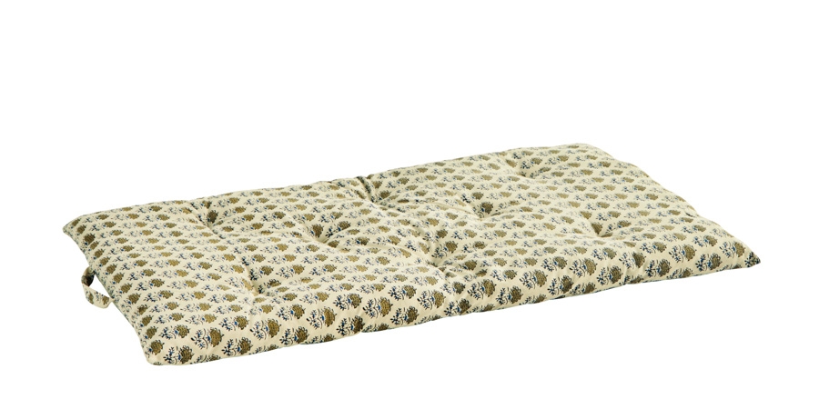Geef je interieur of tuin een stijlvolle update met dit matraskussen van Madam Stoltz. Het kussen is 60×100 cm en heeft een speelse print in wit, groen en blauw. Ideaal als zitkussen op een bankje, loungestoel of op een palletbank. Ook perfect als vloerkussen voor een ontspannen boho vibe.