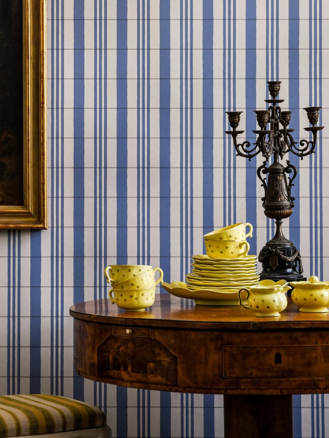 Dit ruitjes behang is ontworpen door de designers Emma von Brömssen en Daniel Långelid, in samenwerking met de Zweedse behangfabriek ‘Ulricehamns Tapetfabrik’.